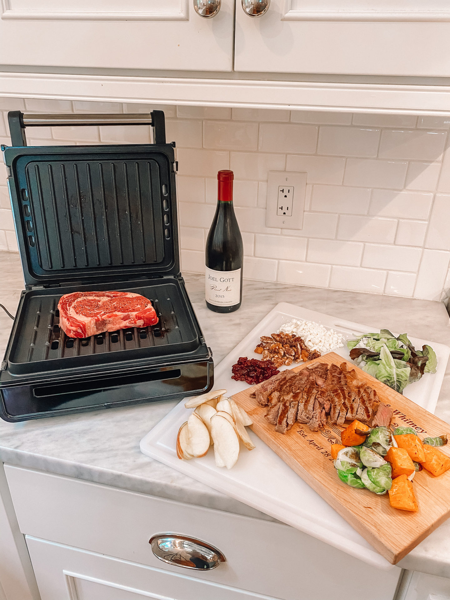 Smokeless Grill and I cannot wait to fix them all! Something about fall this year has me craving decadent salads! This easy fall harvest steak salad is the perfect (and super filling) dinner for fall. It’s also a favorite for entertaining and doesn’t require a lot of prep or skill in the kitchen. The George Foreman grill has been a gamechanger for me in the kitchen and makes it so easy to whip up a quick and delicious dinner.